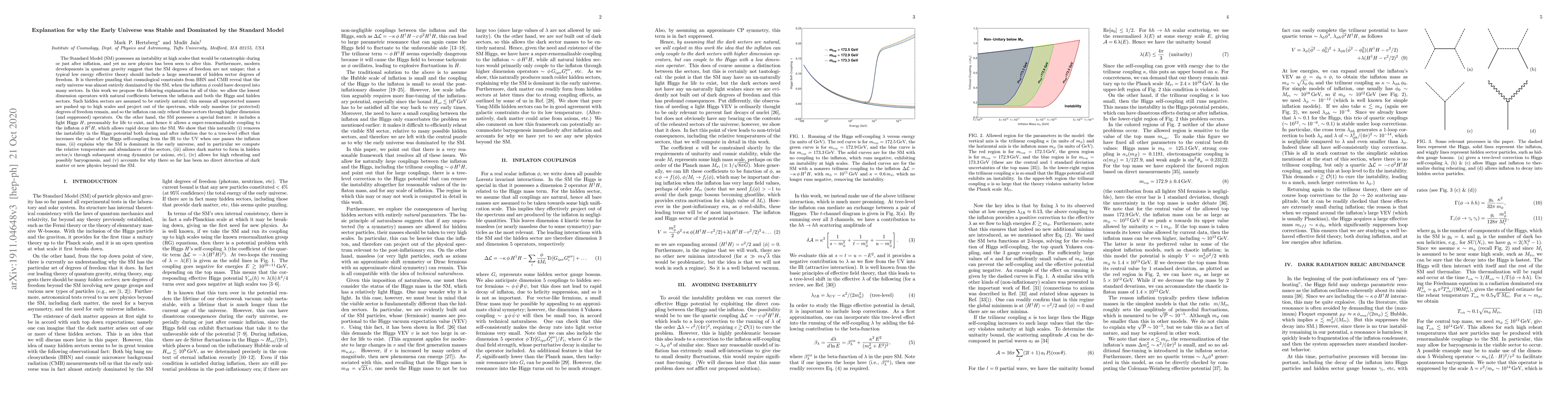The paper proposes a new explanation for why the early universe was stable and dominated by the Standard Model, suggesting that hidden sector degrees of freedom were naturally pushed out of the spectrum during inflation, allowing rapid reheating into the SM.