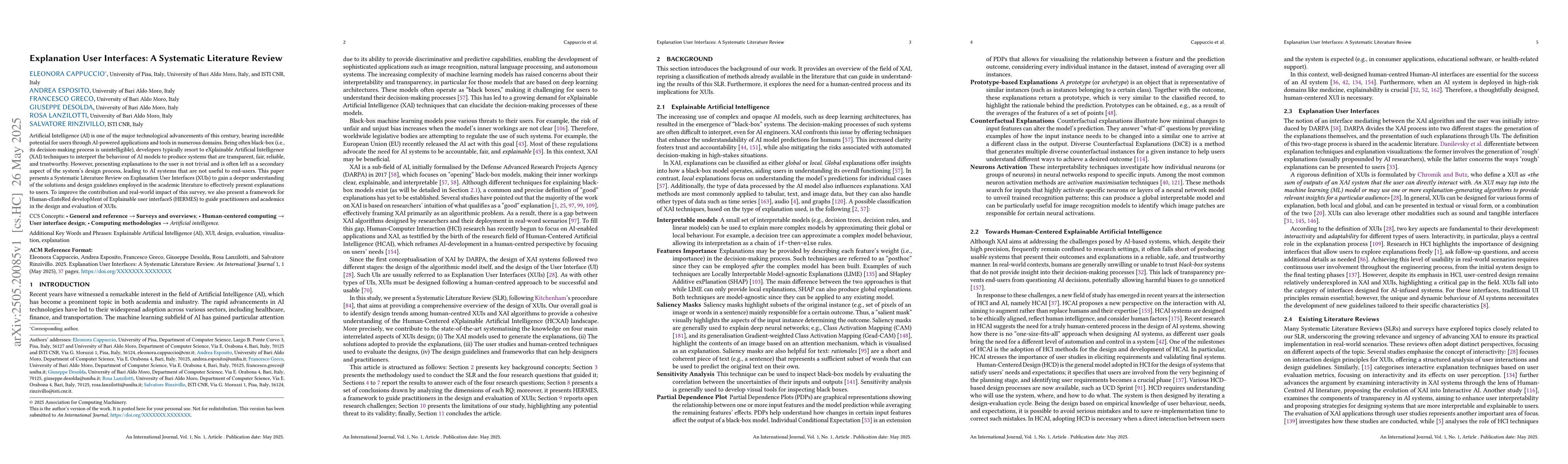 A systematic review explores how Artificial Intelligence can be presented in a way that is transparent, fair, and trustworthy to users through explanations user interfaces (XUIs). A framework called HERMES guides the design and evaluation of XUIs for effective human-centered development.