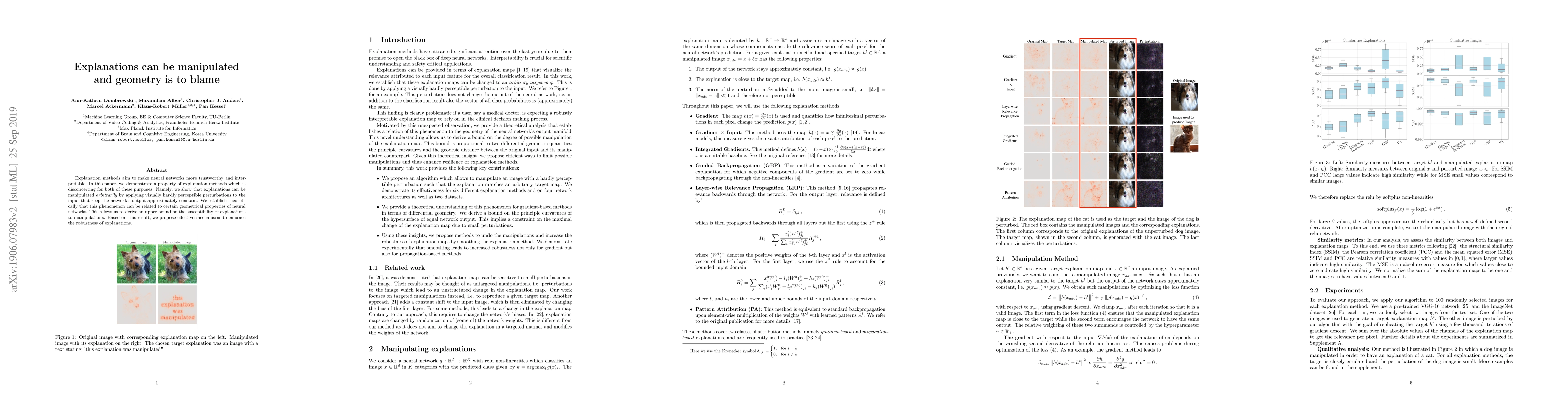 This paper reveals that neural network explanations can be manipulated through subtle input changes, linked to the geometry of the network. It proposes mechanisms to improve the robustness of these explanations based on theoretical insights into their geometric vulnerability.