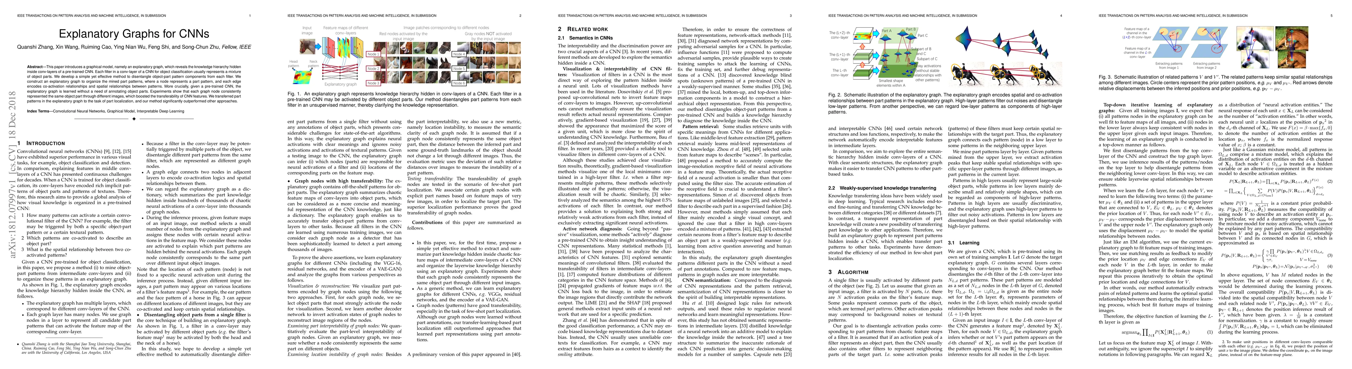 This paper introduces an explanatory graph model that reveals object-part patterns hidden inside CNNs, boosting transferability of features and outperforming other approaches in part localization tasks.