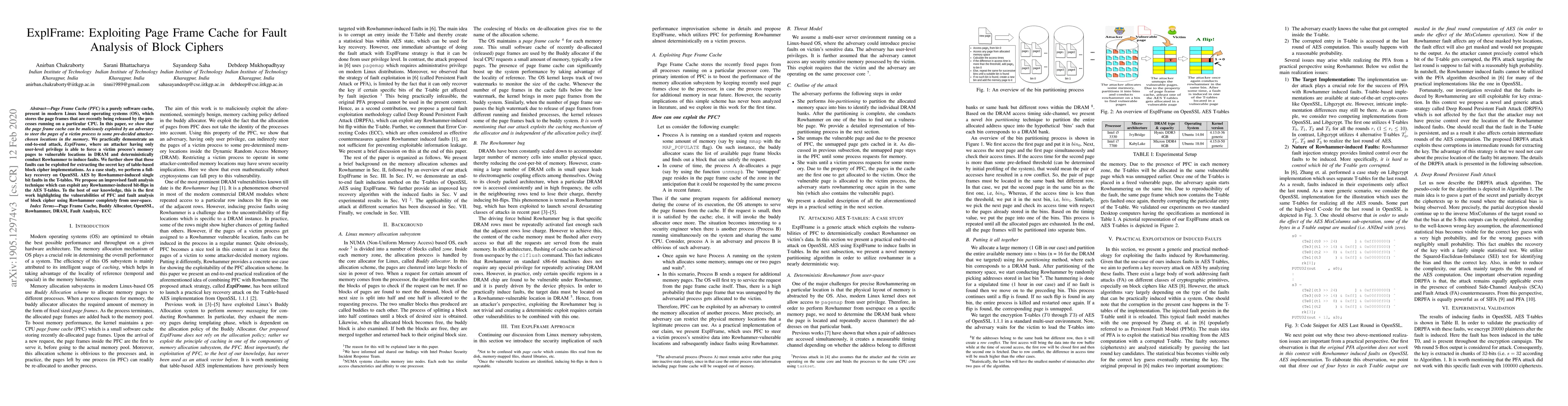Researchers demonstrate how an attacker can exploit a Linux-based OS's page frame cache to steer memory pages to vulnerable locations, leading to faults that can reveal secret keys in block ciphers like AES.