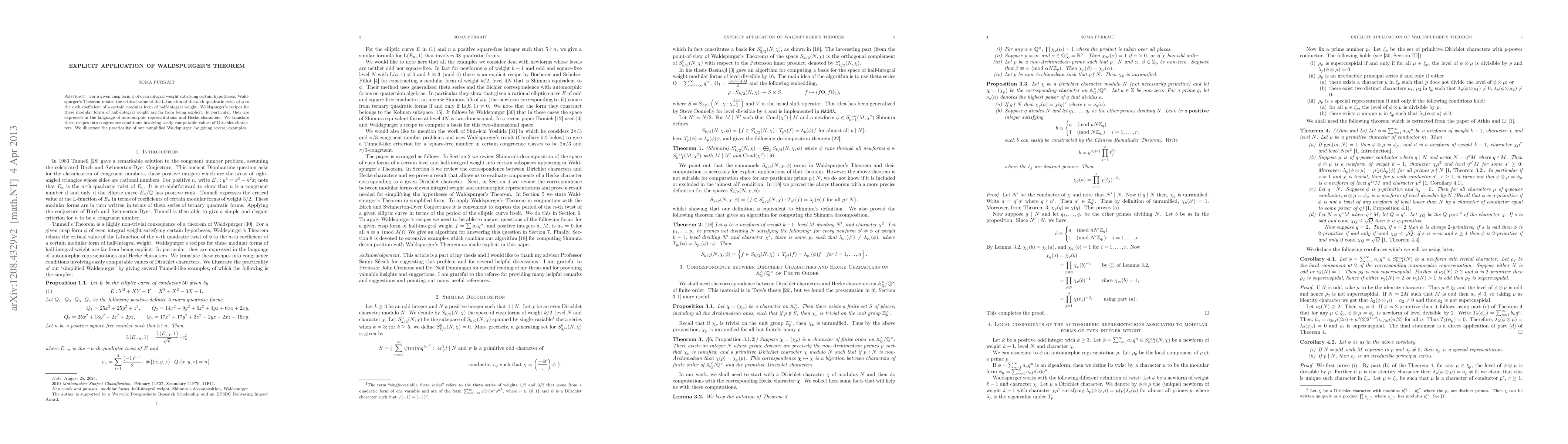 Researchers simplify Waldspurger's Theorem by translating its recipes into congruence conditions involving easily computable values of Dirichlet characters, making the theorem more practical for computation.