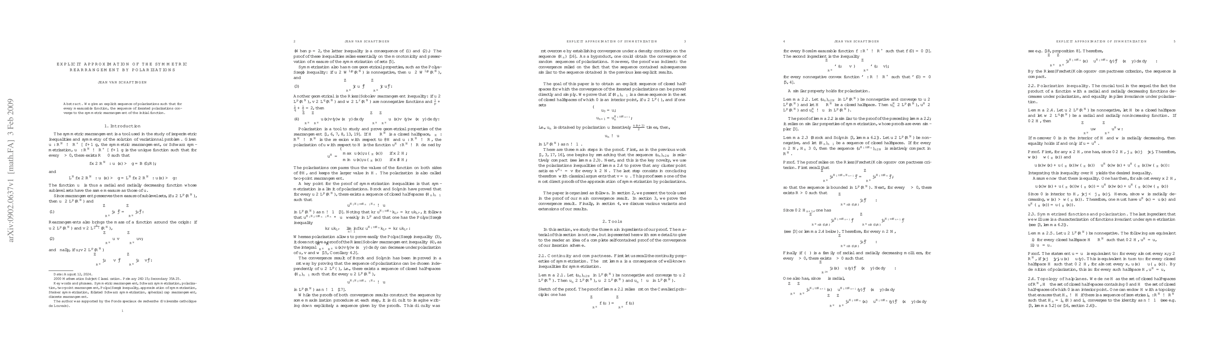 This paper presents an explicit sequence of polarizations that converges to the symmetric rearrangement of any measurable function. The method provides a practical approach to approximating the symmetric rearrangement.
