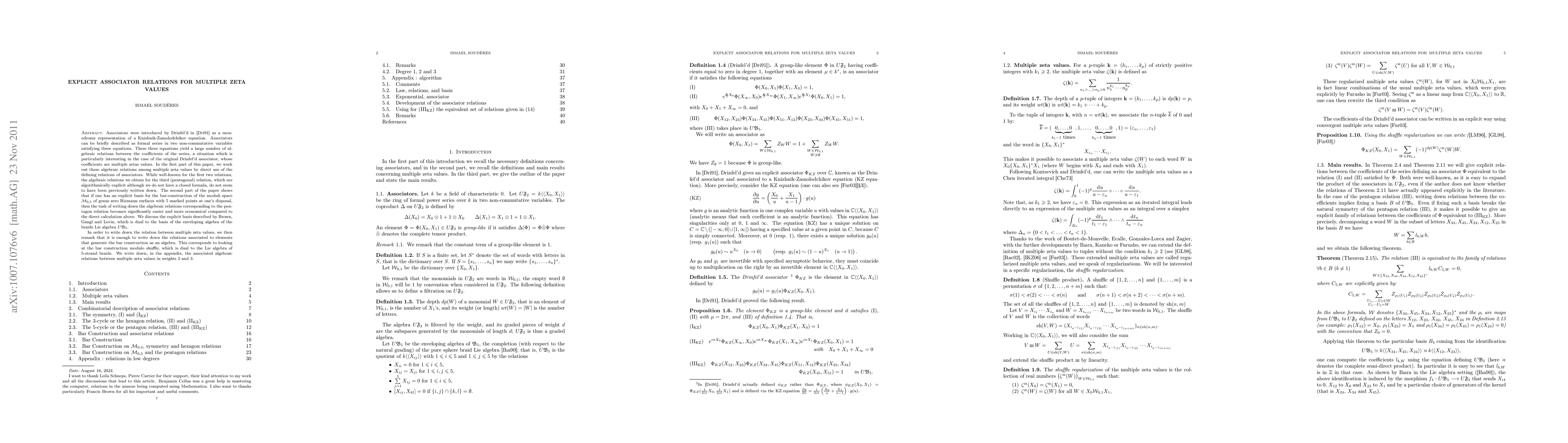 Researchers derived explicit algebraic relations among multiple zeta values based on associators, a monodromy representation of KZ equations, offering new insights into the properties of these mathematical objects.