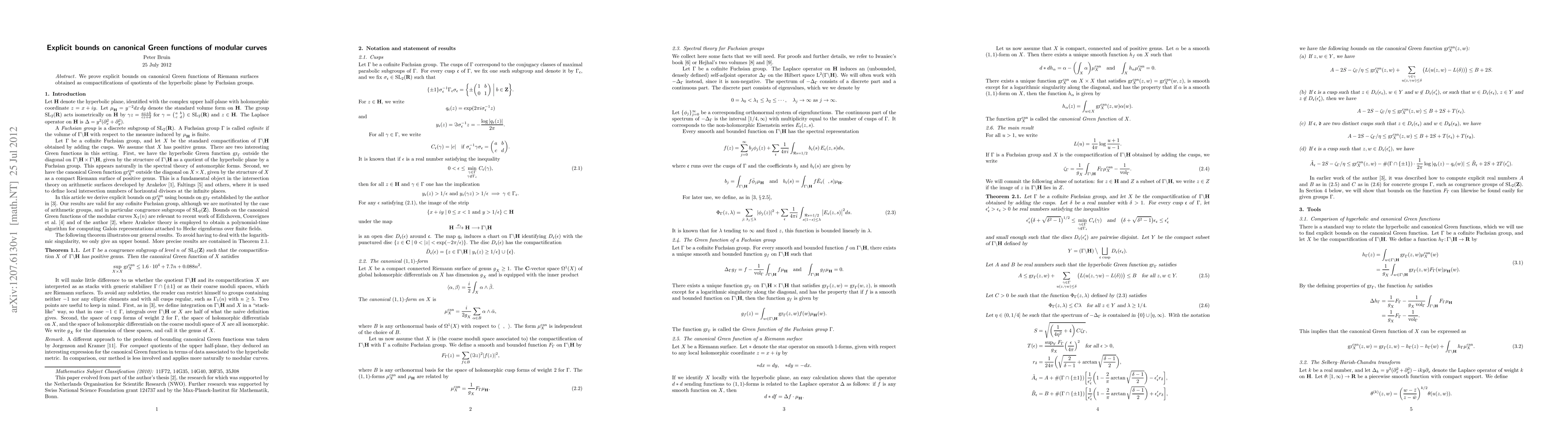 This paper establishes explicit bounds for canonical Green functions associated with modular curves, which are Riemann surfaces formed by compactifying quotients of the upper half-plane by Fuchsian groups. The results provide precise numerical limits on these functions.