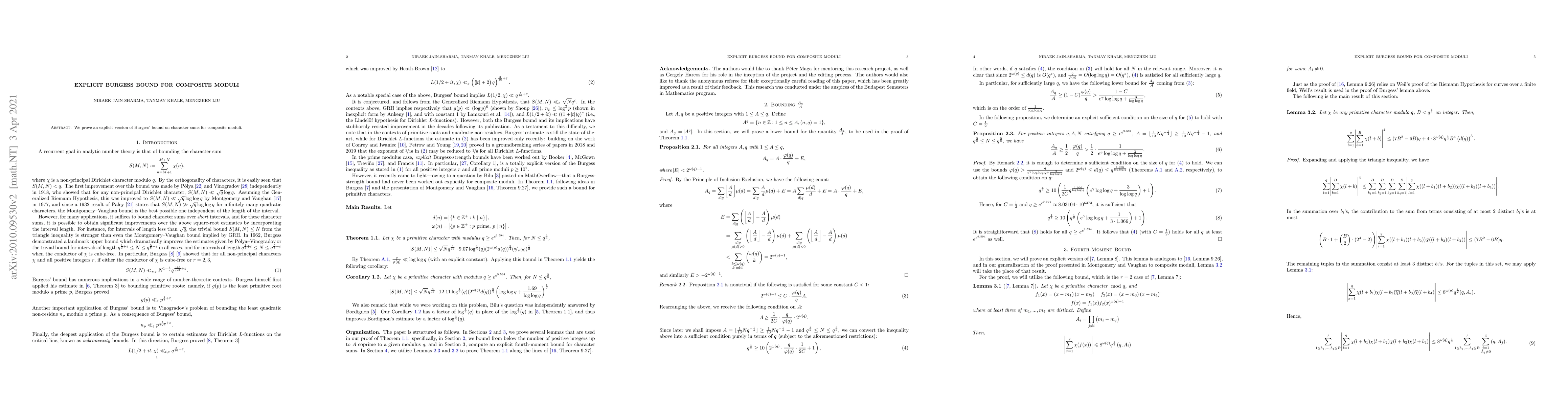 This paper establishes an explicit version of Burgess' bound on character sums specifically for composite moduli, providing more precise estimates in analytic number theory. The result enhances understanding of character sums in this context.