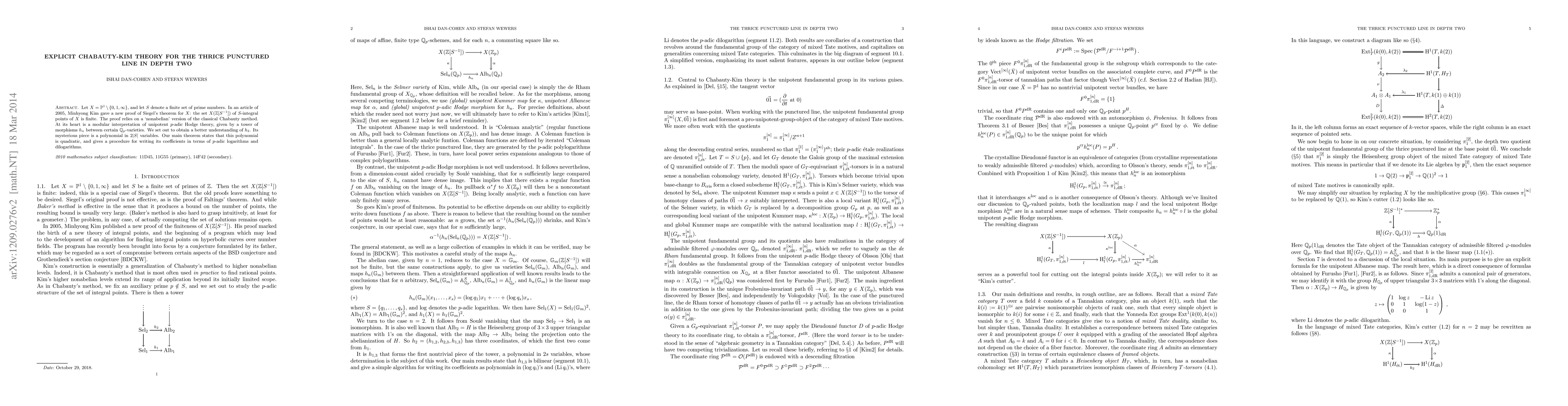 This paper develops an explicit version of Chabauty-Kim theory for the thrice punctured line $X=\mathbb{P}^1 \setminus \{0,1,\infty\}$, proving that the set $X(\mathbb{Z}[S^{-1}])$ of $S$-integral points is finite. The authors show that a key polynomial in $2|S|$ variables, central to the theory, is quadratic and provide a method for expressing its coefficients using $p$-adic logarithms and dilogarithms.