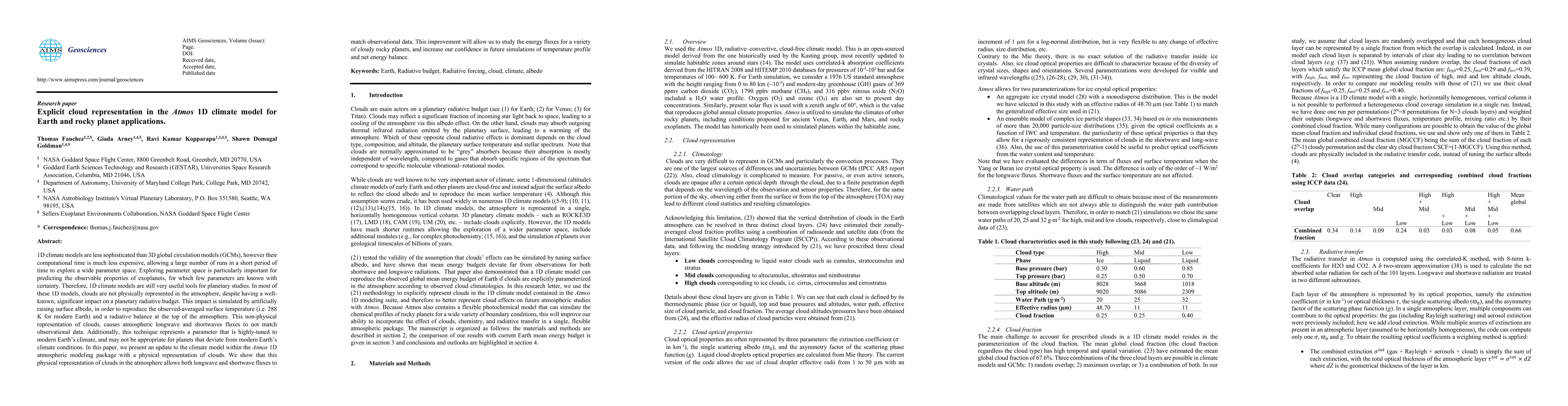 1D climate models are less sophisticated than 3D global circulation models (GCMs), however their computational time is much less expensive, allowing a large number of runs in a short period of time to explore a wide parameter space. Exploring parameter space is particularly important for predicting the observable properties of exoplanets, for which few parameters are known with certainty. Therefore, 1D climate models are still very useful tools for planetary studies. In most of these 1D models, clouds are not physically represented in the atmosphere, despite having a well-known, significant impact on a planetary radiative budget. This impact is simulated by artificially raising surface albedo, in order to reproduce the observed-averaged surface temperature (i.e. 288 K for modern Earth) and a radiative balance at the top of the atmosphere. This non-physical representation of clouds, causes atmospheric longwave and shortwaves fluxes to not match observational data. Additionally, this technique represents a parameter that is highly-tuned to modern Earth's climate, and may not be appropriate for planets that deviate from modern Earth's climate conditions. In this paper, we present an update to the climate model within the Atmos 1D atmospheric modeling package with a physical representation of clouds. We show that this physical representation of clouds in the atmosphere allows both longwave and shortwave fluxes to match observational data. This improvement will allow us to study the energy fluxes for a variety of cloudy rocky planets, and increase our confidence in future simulations of temperature profile and net energy balance.
