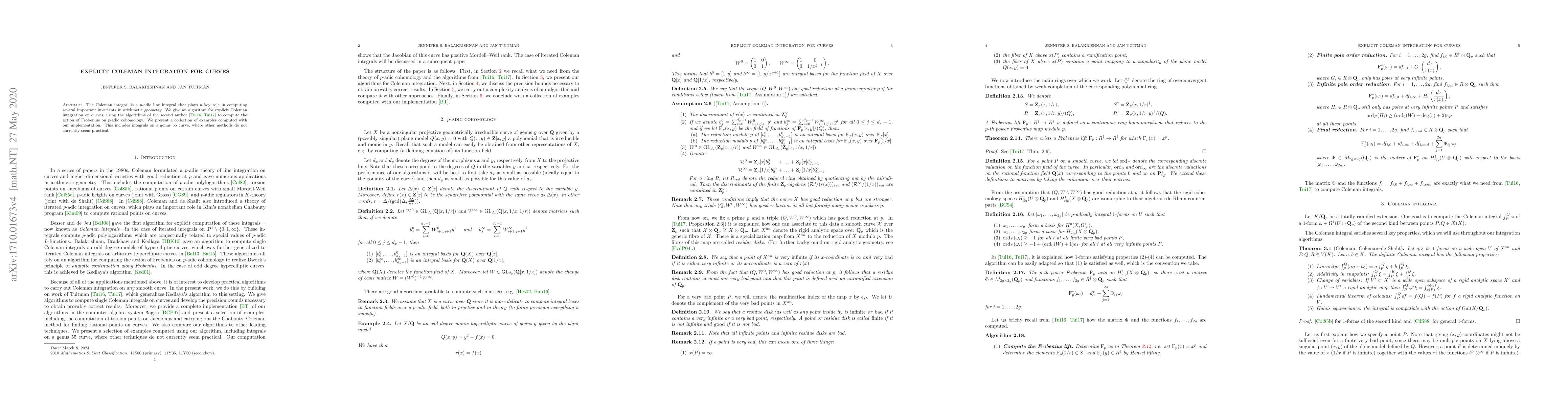 This paper presents an algorithm for explicit Coleman integration on curves, utilizing the second author's methods to compute Frobenius action on $p$-adic cohomology, and demonstrates its effectiveness through examples, including a genus 55 curve where other methods are impractical.