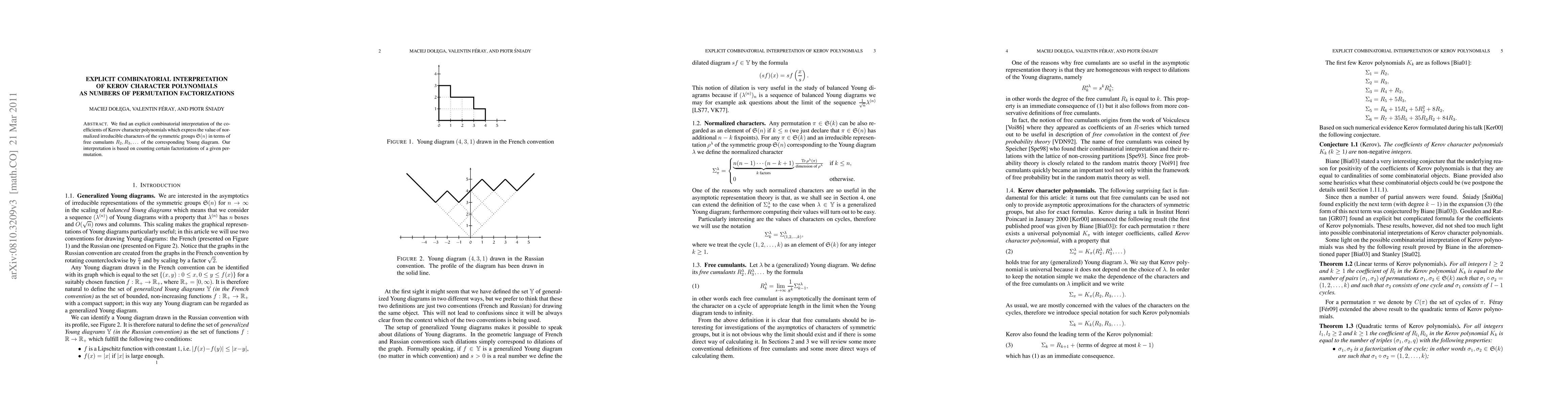 Summary: This paper provides an explicit combinatorial interpretation of the coefficients of Kerov character polynomials, showing they count specific permutation factorizations, and relates these counts to the free cumulants of the corresponding Young diagram.