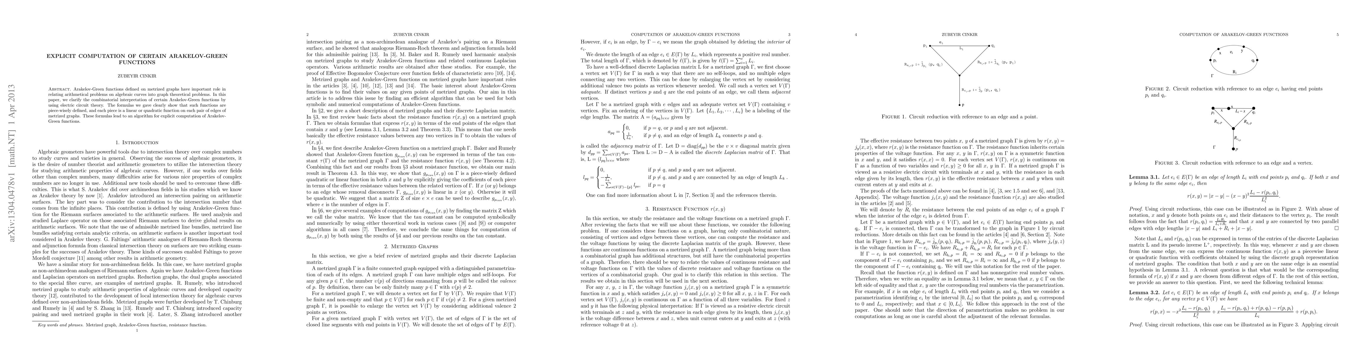 This paper clarifies the combinatorial interpretation of certain Arakelov-Green functions on metrized graphs using electric circuit theory, revealing that they are piecewise linear or quadratic functions. It provides an explicit computation algorithm based on these formulas.