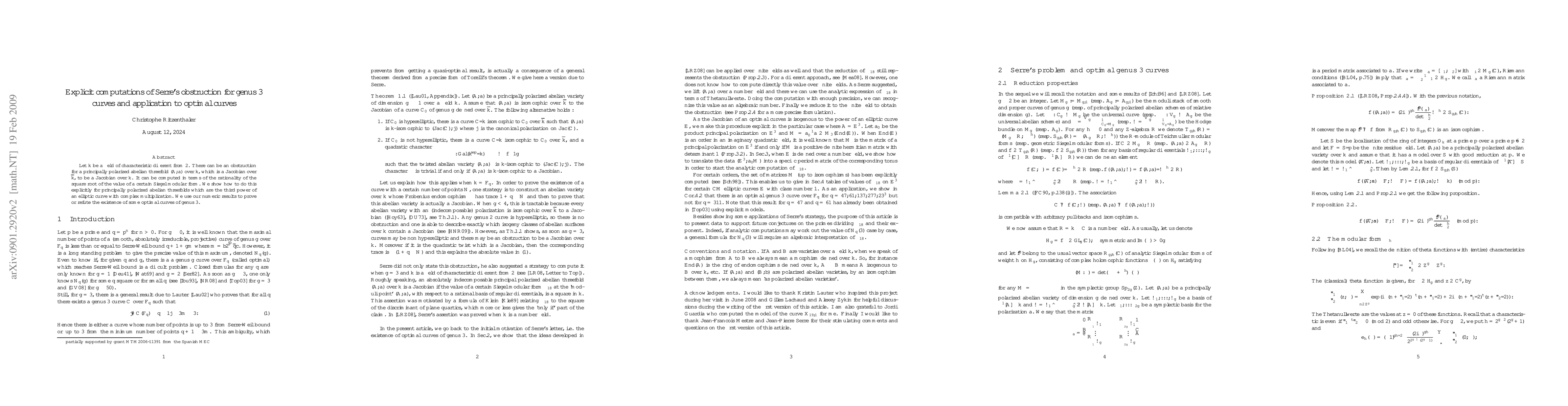 This research explicitly computes Serre's obstruction for genus 3 curves, using principles of Siegel modular forms. The method is applied to abelian threefolds, which are third powers of elliptic curves with complex multiplication. The results are utilized to either confirm or deny the existence of certain optimal curves of genus 3.