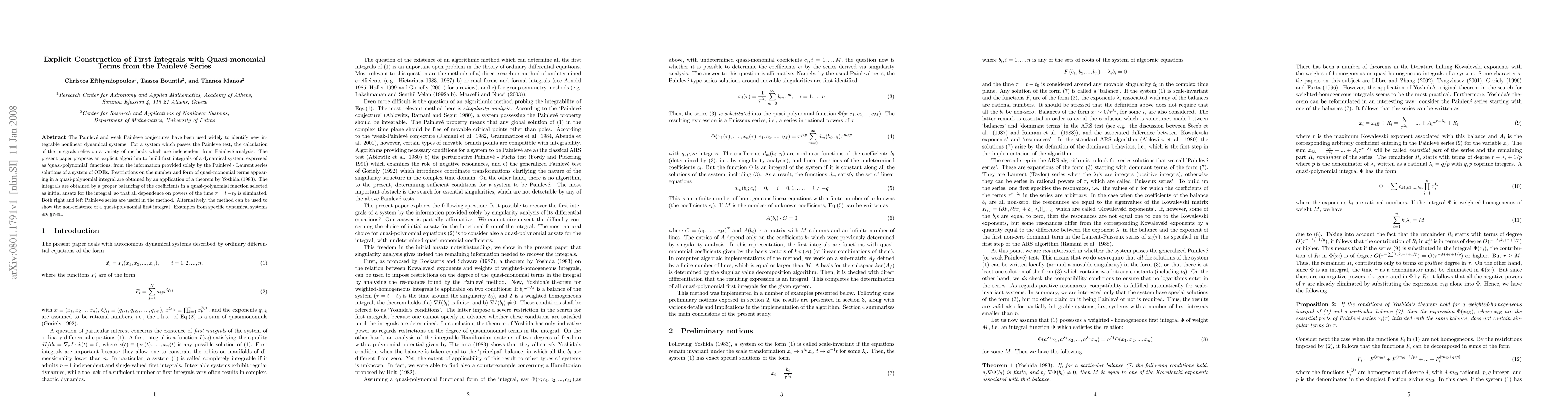 This paper presents an explicit algorithm to construct first integrals for dynamical systems using Painlevé-Laurent series solutions, focusing on quasi-polynomial forms. It employs Yoshida's theorem to restrict quasi-monomial terms and balances coefficients to eliminate time dependence, demonstrating both existence and non-existence of such integrals through examples.
