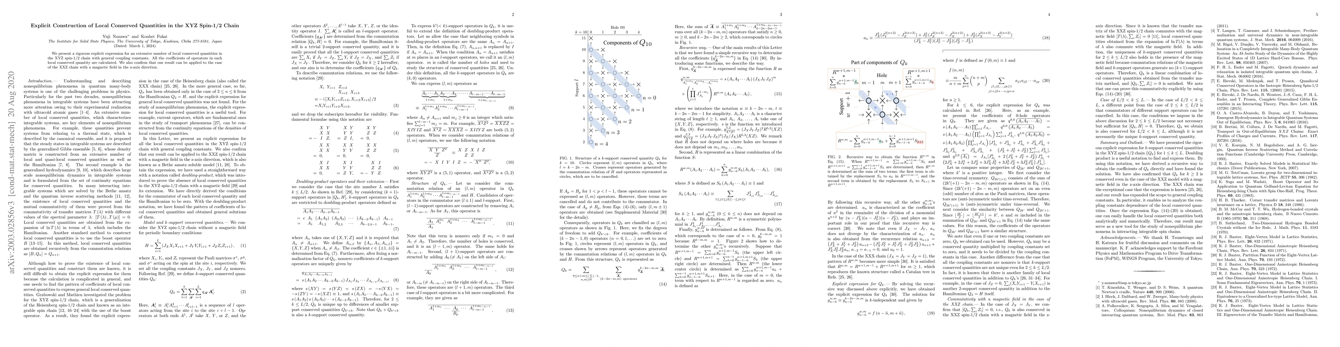 Researchers developed an explicit formula for calculating local conserved quantities in a specific type of quantum chain, which can be applied to similar systems like the XXZ chain with a magnetic field.
