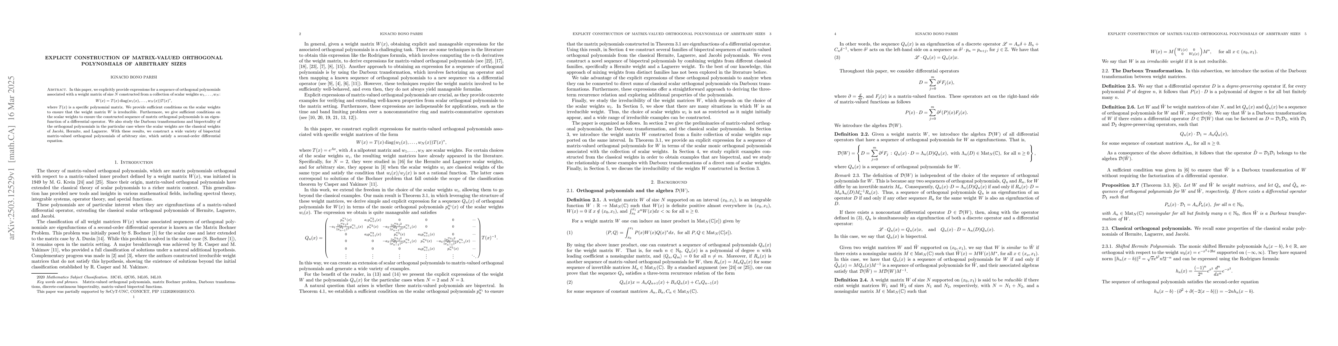 The paper presents explicit expressions for matrix-valued orthogonal polynomials of arbitrary sizes using a weight matrix constructed from scalar weights, ensuring irreducibility and eigenfunction properties under specific conditions.