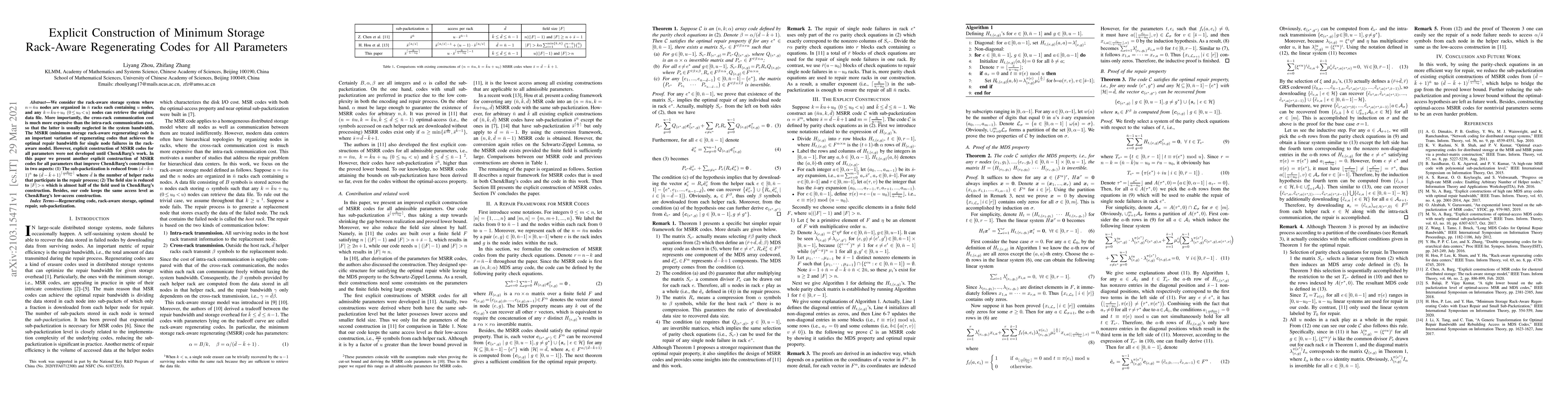 The paper presents an explicit construction of Minimum Storage Rack-Aware Regenerating (MSRR) codes for all parameters, improving upon Chen & Barg's construction by reducing sub-packetization and field size.