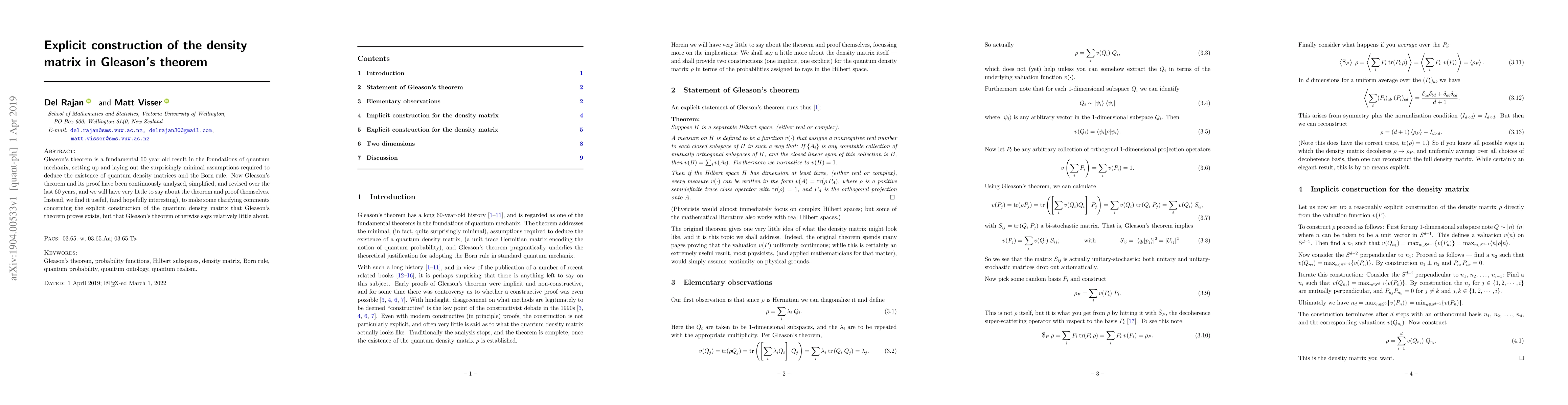 This paper clarifies the explicit construction of the quantum density matrix guaranteed by Gleason's theorem, providing additional insights into the minimal assumptions required to deduce its existence and the Born rule, without delving deeply into the theorem's proof itself.