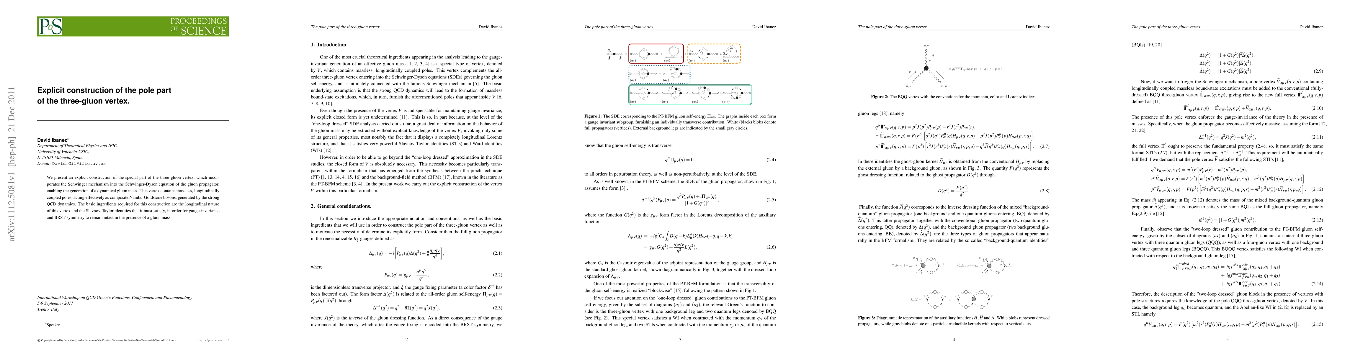 The paper presents a detailed explicit construction method for pole parts of three-gluon vertices, integrating Schwinger mechanism into the gluon propagator's SDE to generate a dynamical mass.