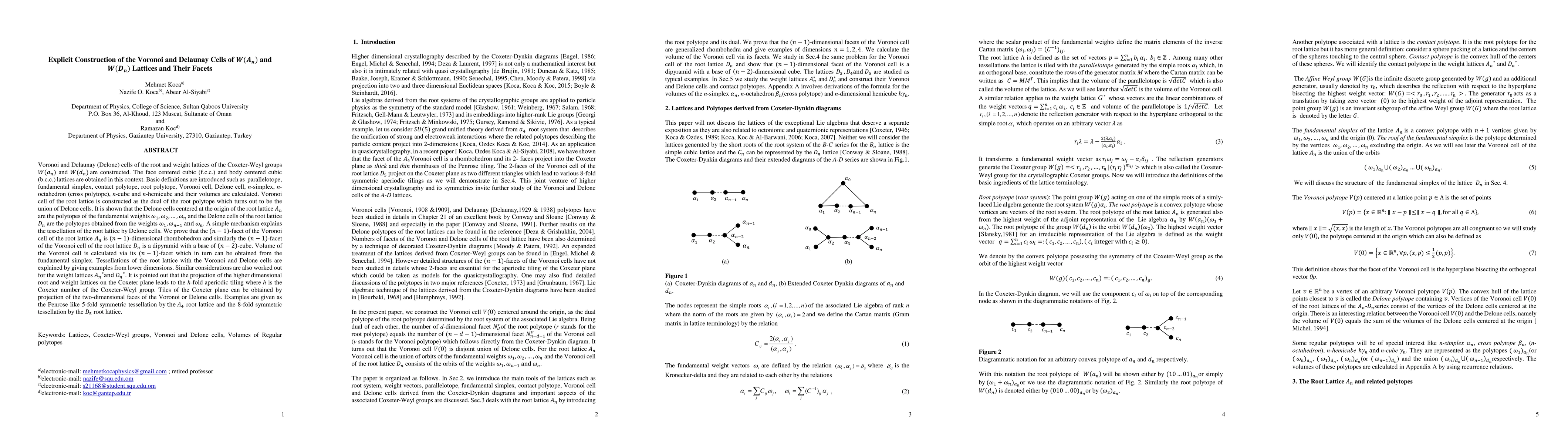 This paper constructs Voronoi and Delaunay cells for the root and weight lattices of Coxeter-Weyl groups W(An) and W(Dn), explaining their tessellations and calculating their volumes. It introduces and defines several polytopes and proves the (n-1)-facet properties for these cells, illustrating with examples from lower dimensions.