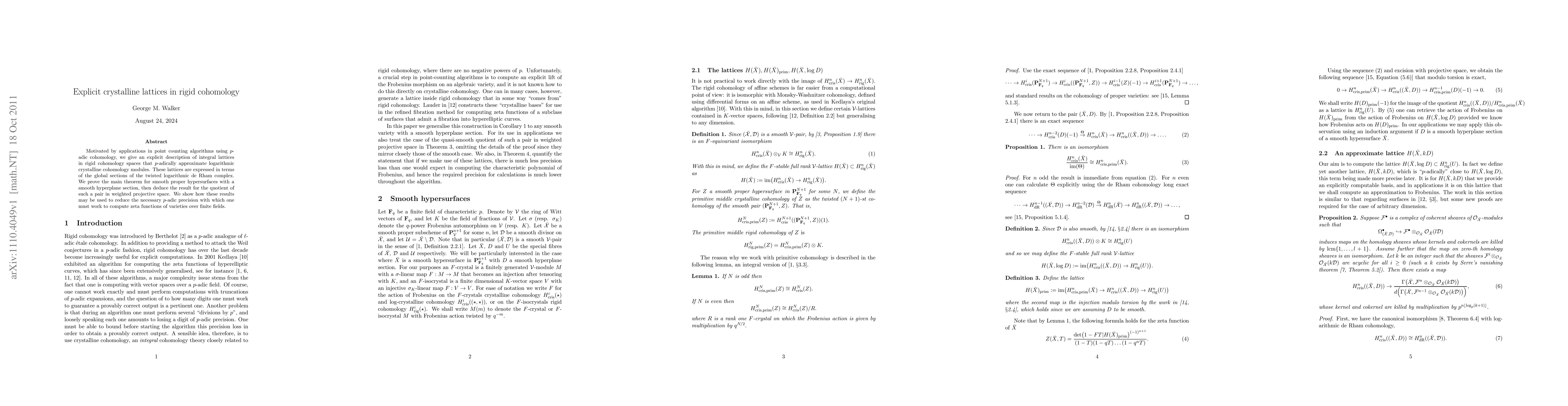 This paper presents explicit integral lattices in rigid cohomology that p-adically approximate logarithmic crystalline cohomology modules, expressed via global sections of the twisted logarithmic de Rham complex. The authors prove the main theorem for smooth proper hypersurfaces and use it to reduce p-adic precision in computing zeta functions of varieties over finite fields.