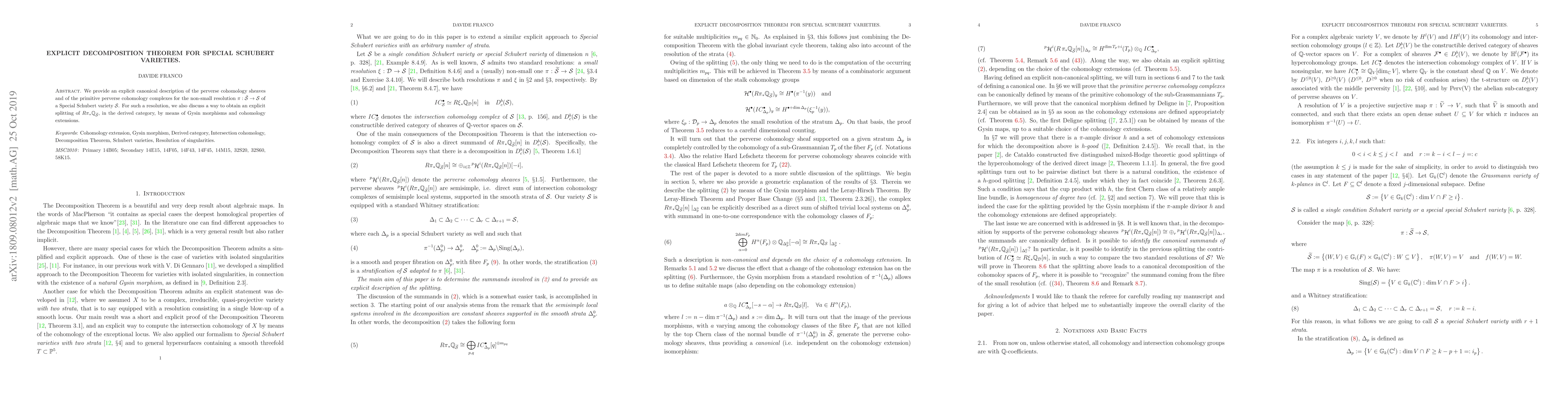 We give a short and self-contained proof of the Decomposition Theorem for the non-small resolution of a Special Schubert variety. We also provide an explicit description of the perverse cohomology sheaves. As a by-product of our approach, we obtain a simple proof of the Relative Hard Lefschetz Theorem.