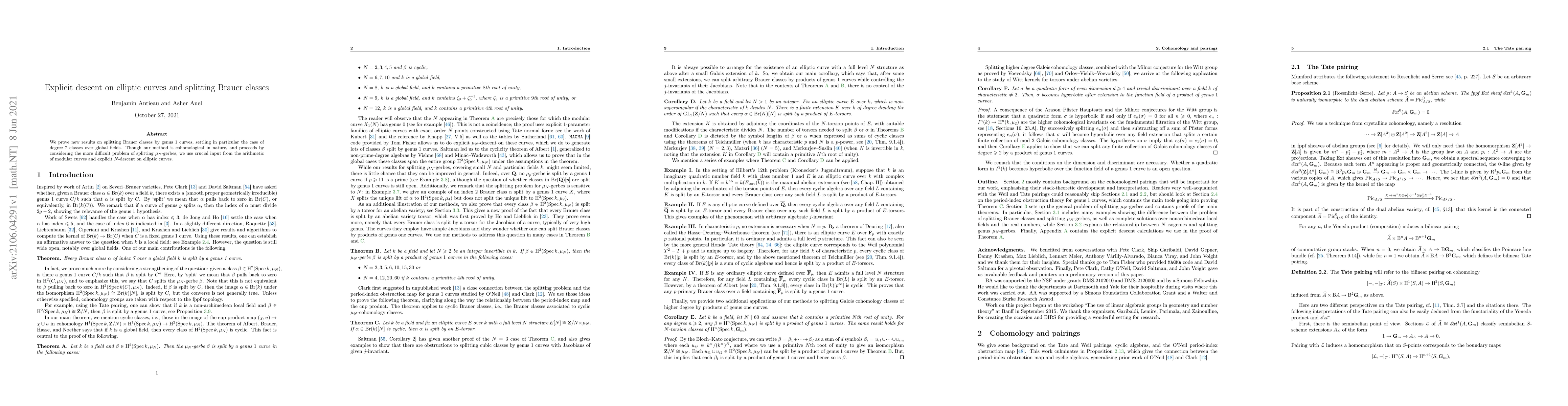 This paper proves new results on the splitting of degree 7 Brauer classes over global fields via genus 1 curves, employing cohomological methods and utilizing crucial insights from modular curves and explicit descent on elliptic curves.