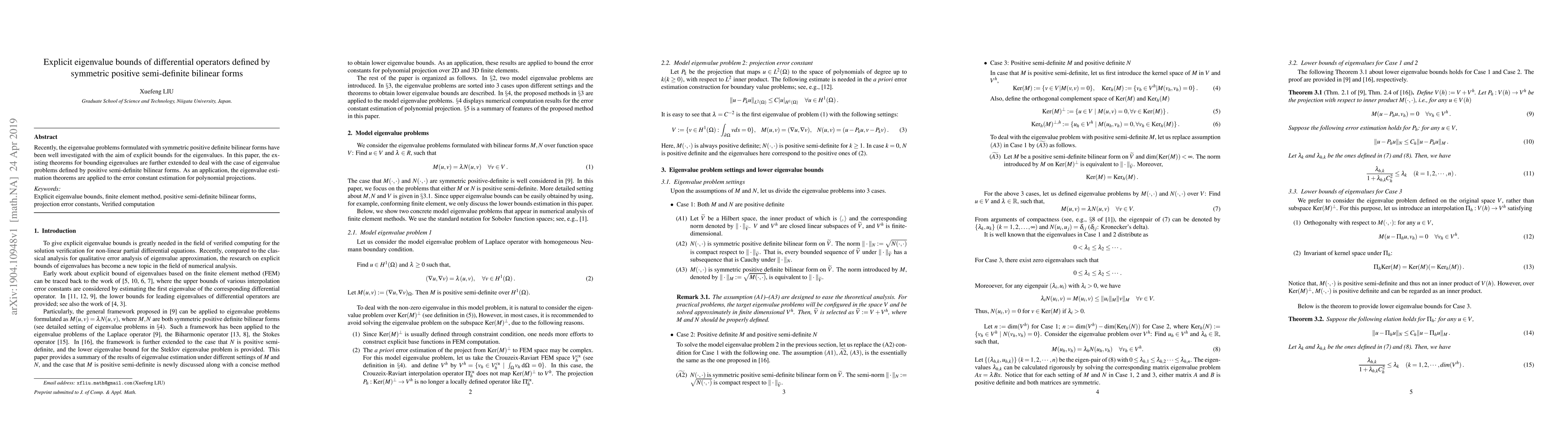 This paper extends existing eigenvalue bounds to positive semi-definite bilinear forms, providing a new framework for estimating error constants in polynomial projections.