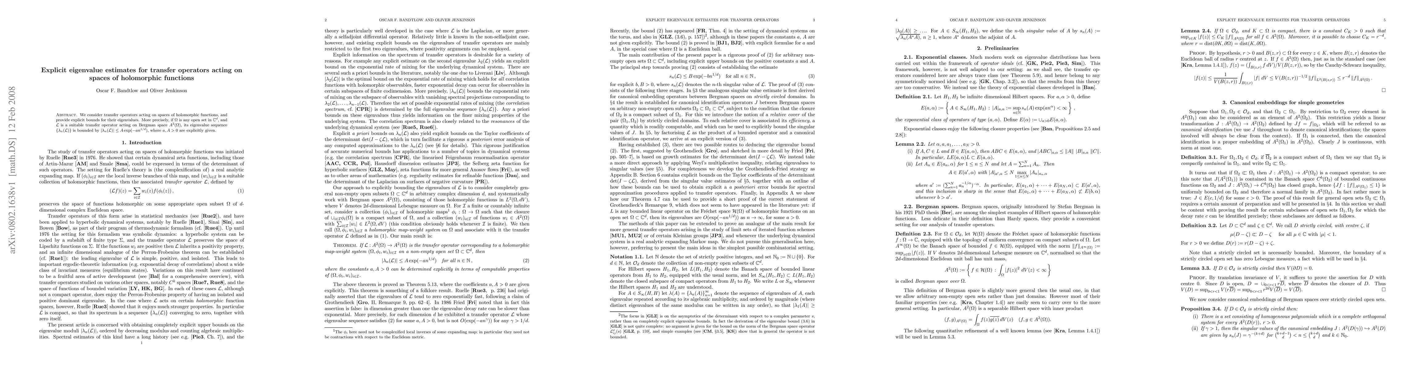 Researchers provide explicit bounds for eigenvalues of transfer operators acting on holomorphic functions, showing that these eigenvalues decay exponentially with n.