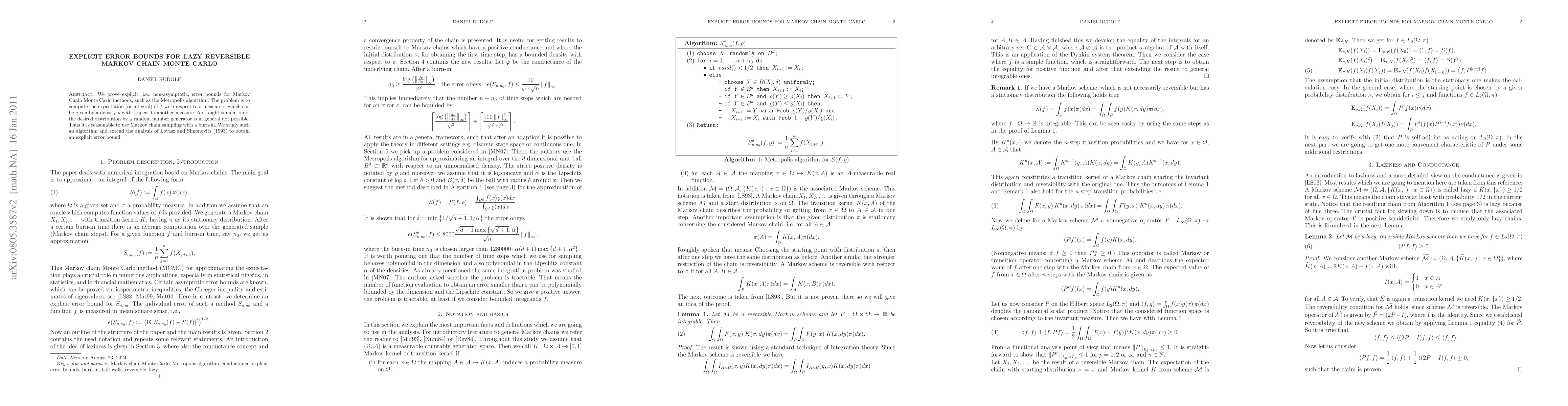 This paper provides explicit, non-asymptotic error bounds for Markov Chain Monte Carlo methods, specifically the Metropolis algorithm, to estimate expectations from distributions that cannot be directly sampled. It extends previous analysis to offer a precise measure of error in lazy reversible Markov Chain Monte Carlo algorithms.