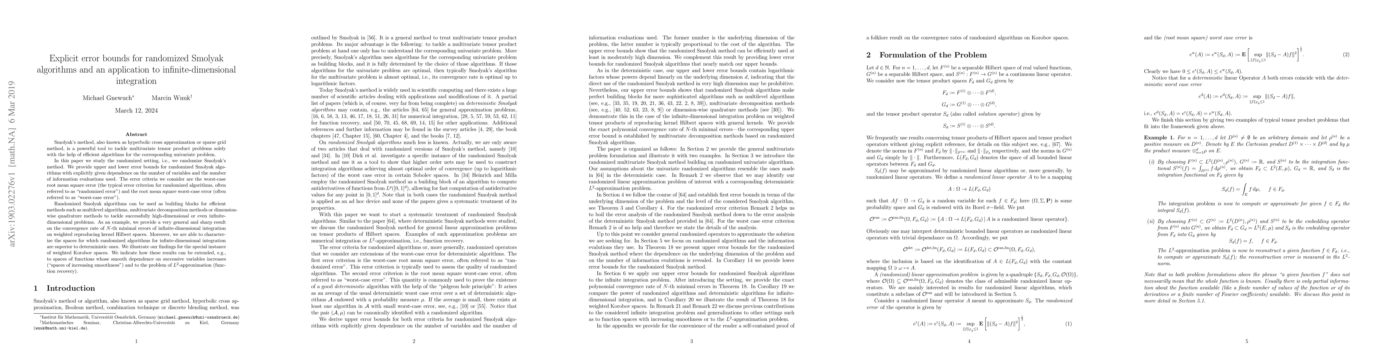 This paper provides explicit error bounds for randomized Smolyak algorithms, analyzing both randomized and worst-case errors. It demonstrates their application in infinite-dimensional integration, showing superior performance in certain weighted reproducing kernel Hilbert spaces over deterministic methods.