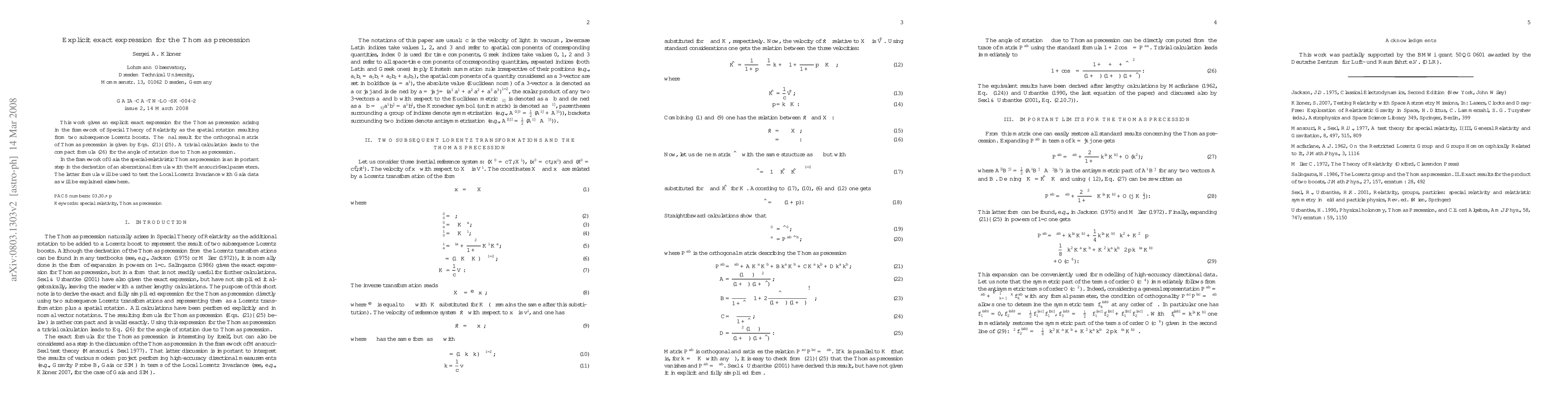 This work gives an explicit exact expression for the Thomas precession arising in the framework of Special Theory of Relativity as the spatial rotation resulting from two subsequence Lorentz boosts. The final result for the orthogonal matrix of Thomas precession is given by Eqs. (21)--(25). A trivial calculation leads to the compact formula (26) for the angle of rotation due to Thomas precession. In the framework of Gaia the special-relativistic Thomas precession is an important step in the derivation of an aberrational formula with the Mansouri-Sexl parameters. The latter formula will be used to test the Local Lorentz Invariance with Gaia data as will be explained elsewhere.
