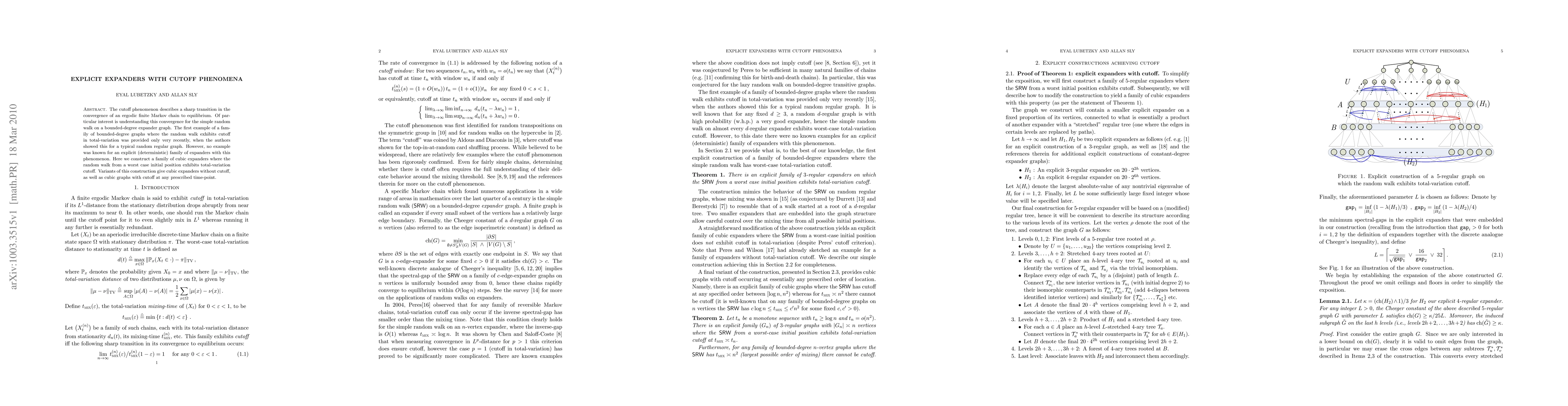 This paper constructs a family of explicit cubic expanders where the random walk shows a sharp cutoff in total-variation convergence to equilibrium. It also presents variants to create cubic expanders without cutoff or with cutoff at any specified time.
