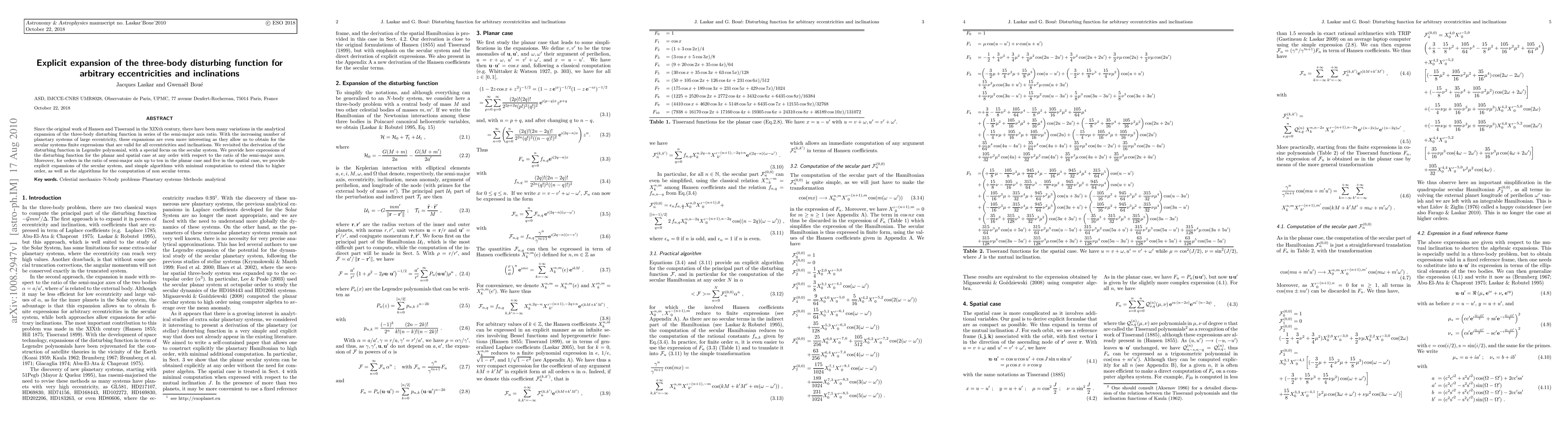 This paper revisits the analytical expansion of the three-body disturbing function using Legendre polynomials, providing explicit expressions for all eccentricities and inclinations. It offers algorithms for computing both secular and non-secular terms, extending to higher orders with minimal computational effort.
