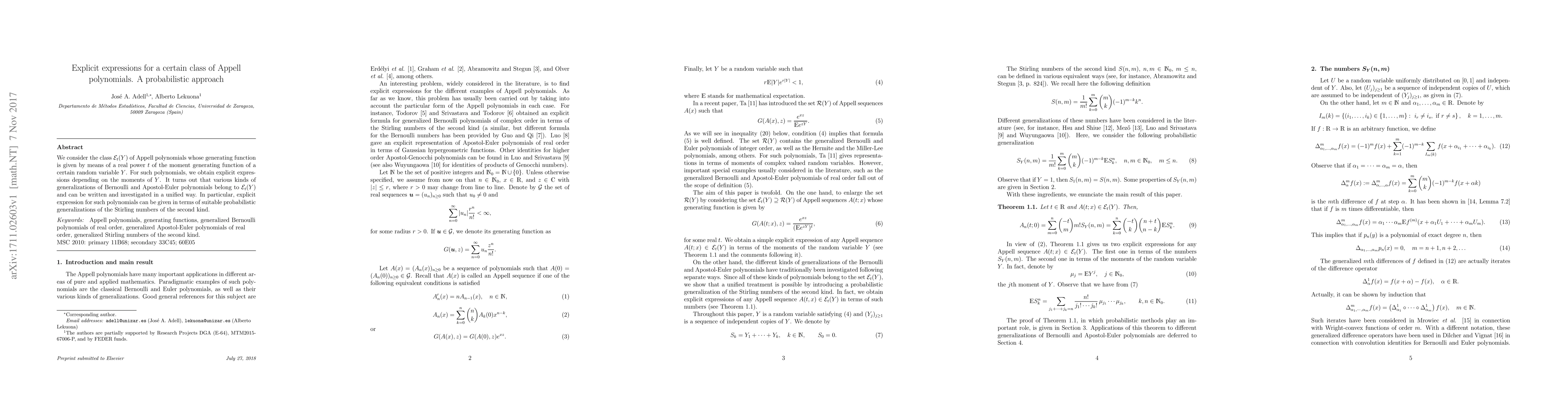 This paper provides explicit expressions for a class of Appell polynomials with generating functions based on real powers of the moment generating function of a random variable Y. It establishes a unified way to express various generalized Bernoulli and Apostol-Euler polynomials.