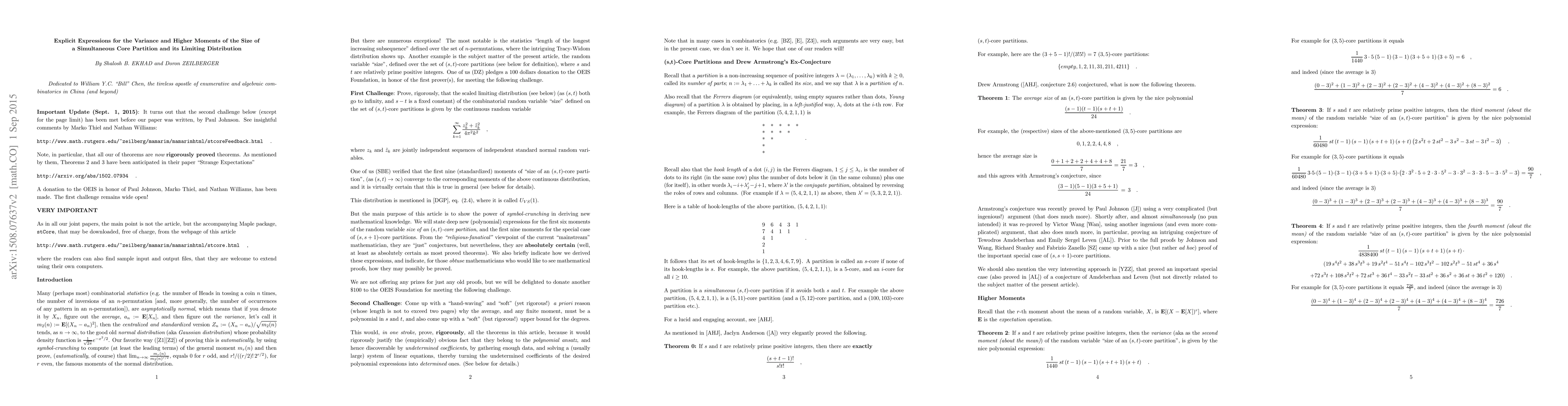 Researchers found explicit expressions for the variance and higher moments of simultaneous core partitions, providing a more detailed understanding of their properties, and posing challenges for further justification and proof.