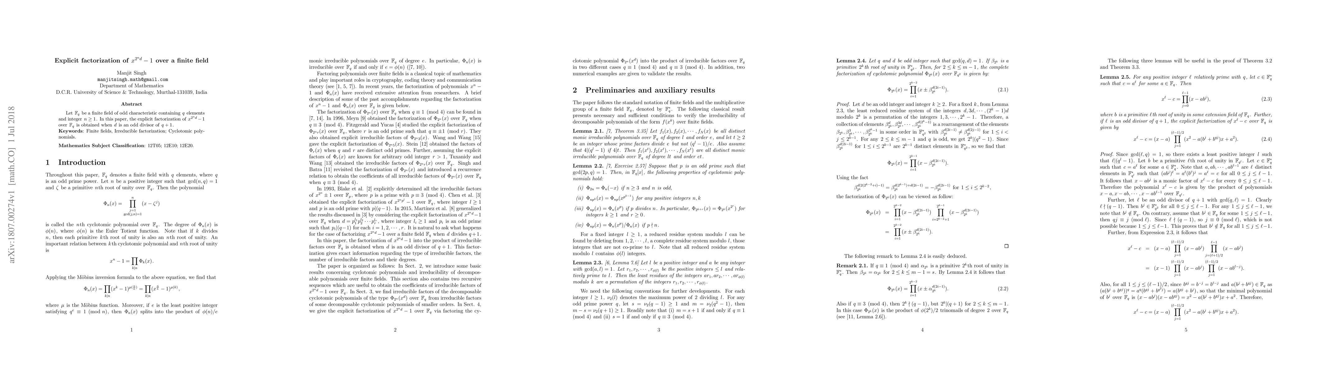Researchers found an explicit factorization method for $x^{2^nd}-1$ over a finite field $bF_q$, where d is an odd divisor of q+1, allowing for efficient factorization of certain polynomial expressions.