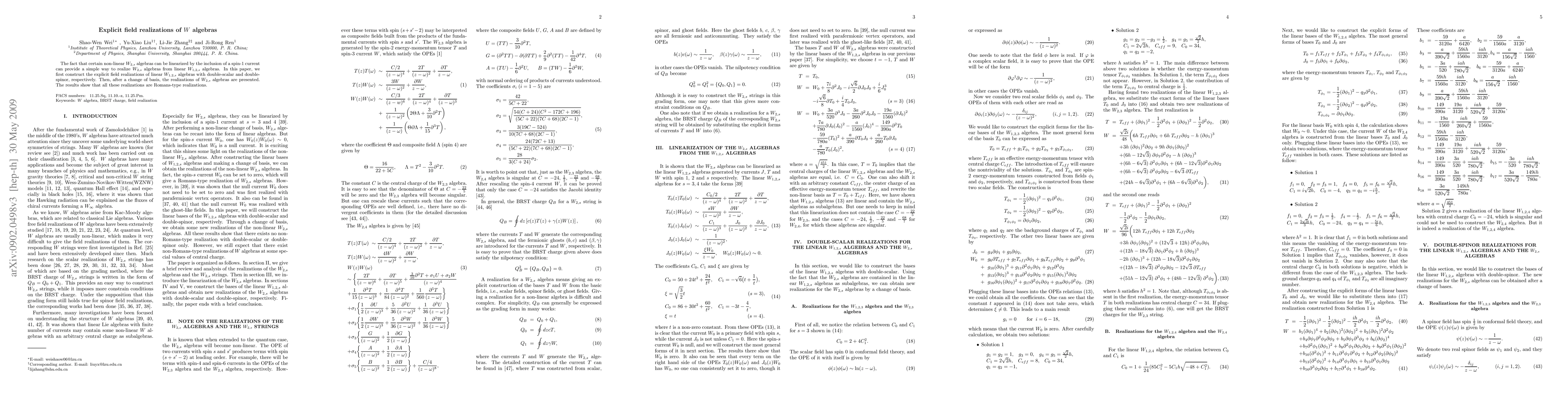 This paper constructs explicit field realizations of linear $W_{1,2,s}$ algebras using double-scalar and double-spinor fields, and subsequently transforms these into realizations of $W_{2,s}$ algebras, demonstrating they are Romans-type realizations.