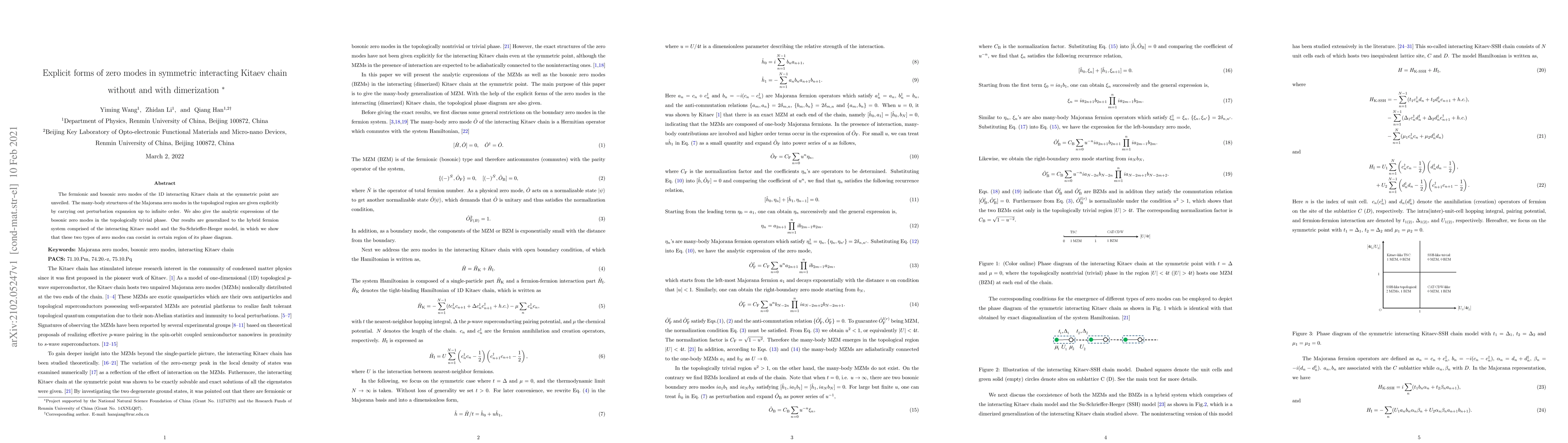 This paper explicitly derives the fermionic and bosonic zero modes in the symmetric interacting Kitaev chain, providing detailed many-body structures of Majorana zero modes through infinite-order perturbation expansion. It also extends these findings to a hybrid system combining the Kitaev model with the Su-Schrieffer-Heeger model, showing coexistence of zero modes in specific regions.