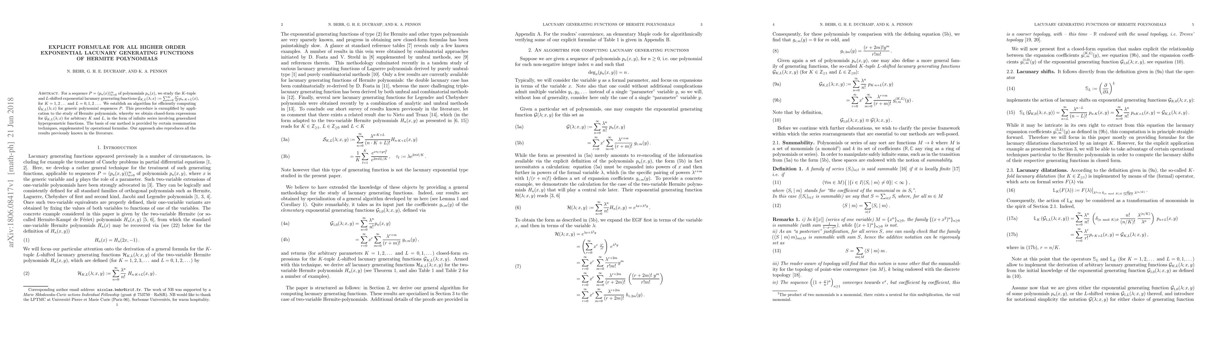 This paper develops an algorithm for computing higher order exponential lacunary generating functions for polynomial sequences, exemplified by Hermite polynomials, yielding closed-form expressions via generalized hypergeometric functions, based on resummation techniques. The method reproduces known results and applies to generic polynomial sequences.