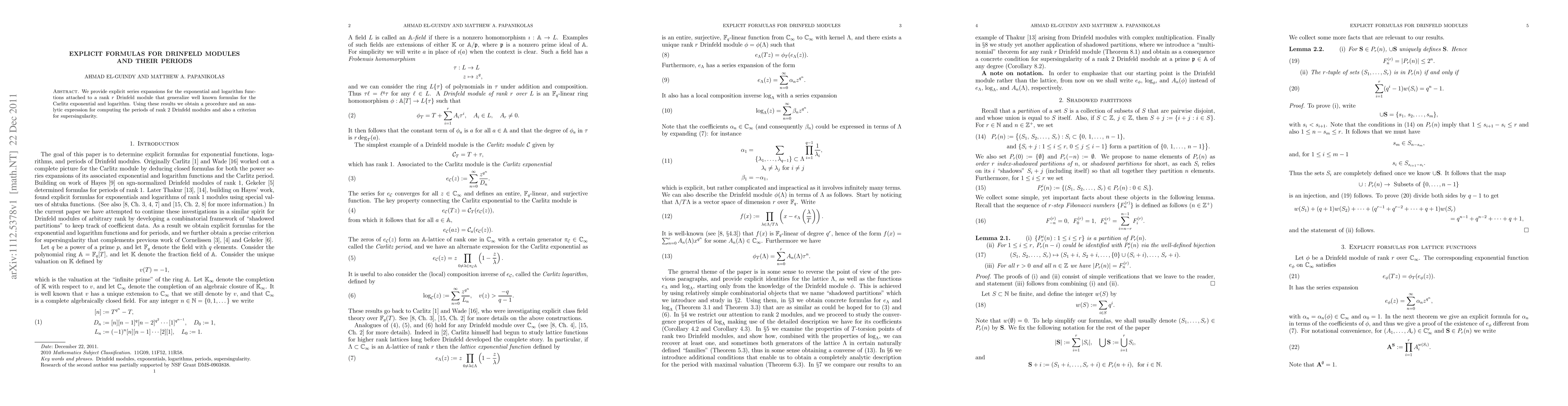 This paper presents explicit series expansions for the exponential and logarithm functions of rank r Drinfeld modules, generalizing formulas for the Carlitz functions. It also provides a method and analytic expression for computing periods of rank 2 Drinfeld modules and a criterion for determining supersingularity.