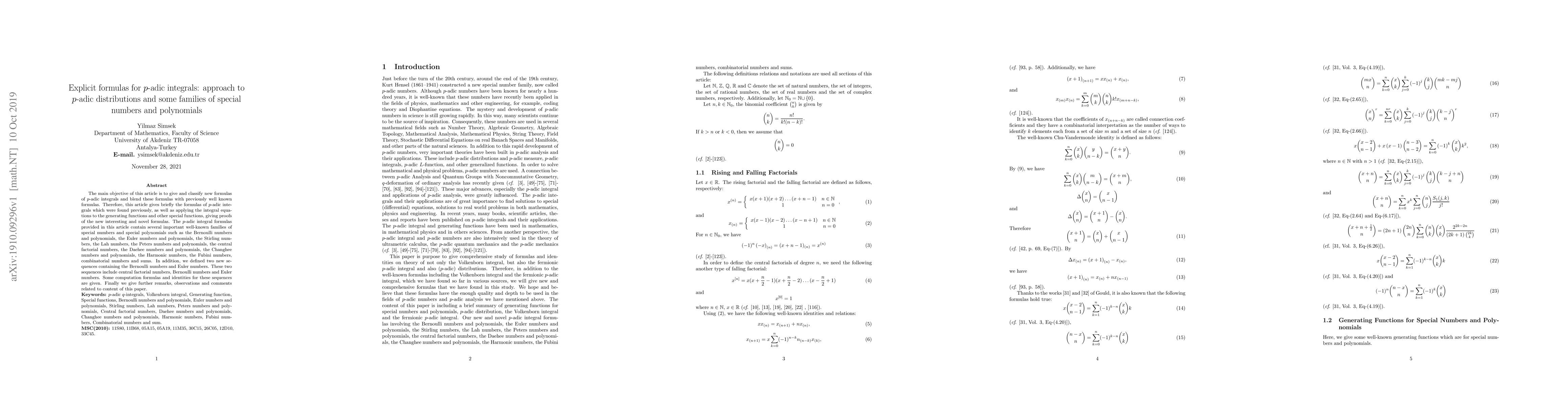 This paper presents new explicit formulas for $p$-adic integrals and classifies them alongside previously known formulas, applying these to generating functions and special numbers/polynomials. It introduces two new sequences involving Bernoulli and Euler numbers, along with computational identities, and discusses their implications.