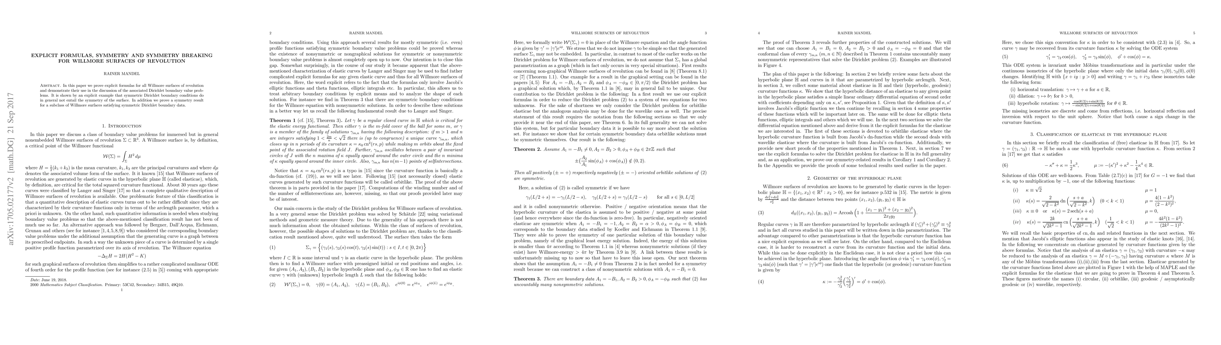 This paper provides explicit formulas for Willmore surfaces of revolution and explores their symmetry properties, demonstrating that symmetric Dirichlet boundary conditions do not necessarily lead to symmetric surfaces, though a symmetry result is proven for a specific subclass under these conditions.