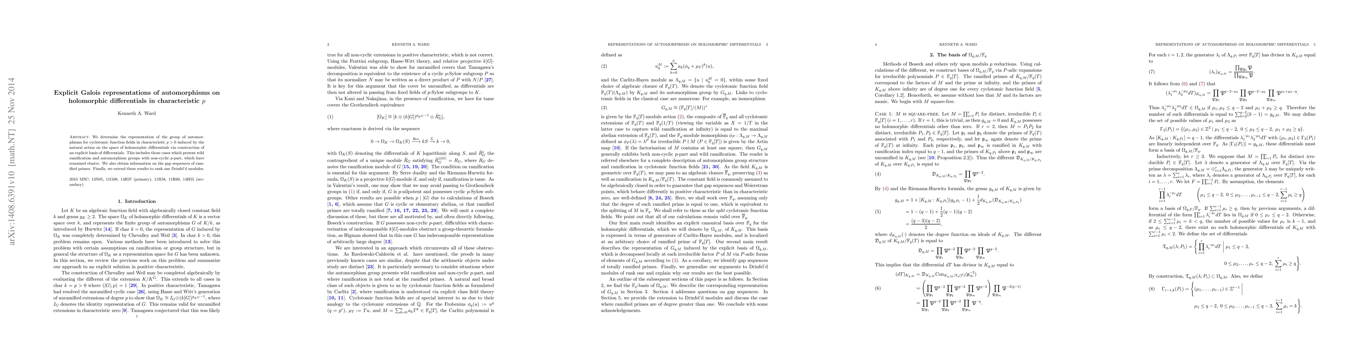 This paper constructs explicit Galois representations for automorphisms on holomorphic differentials in positive characteristic, addressing cases with wild ramification and non-cyclic $p$-part automorphism groups. It also provides insights into the gap sequences of ramified primes and extends findings to rank one Drinfel'd modules.