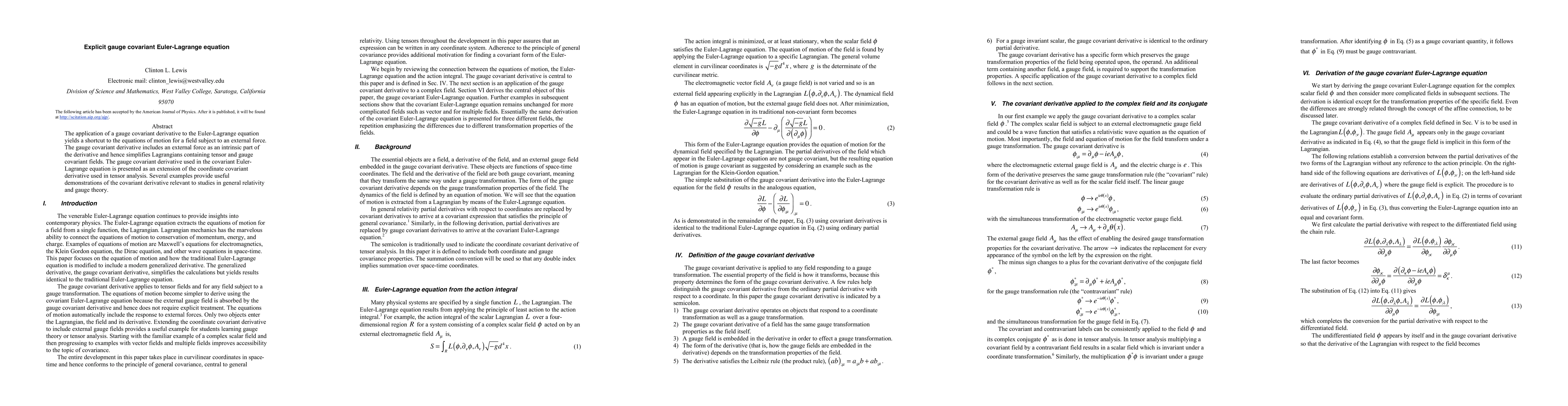 This paper introduces a gauge covariant derivative to the Euler-Lagrange equation, providing a simplified method for deriving equations of motion for fields under external forces. The approach extends the coordinate covariant derivative and is demonstrated through examples relevant to general relativity and gauge theory.