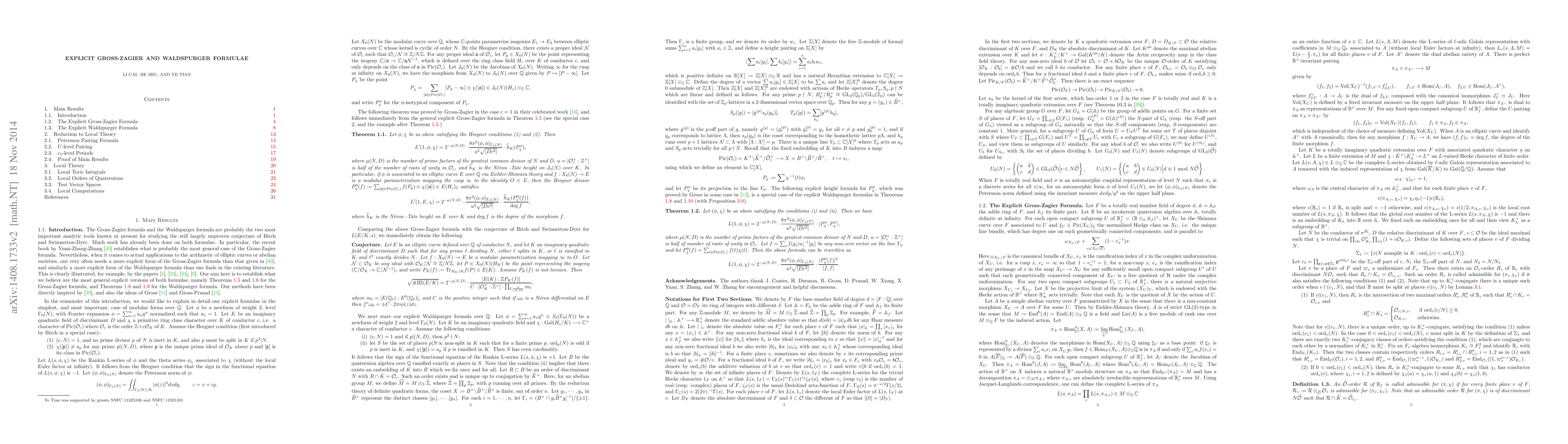 Summary: This paper presents explicit formulations of Gross-Zagier and Waldspurger formulas, providing clear expressions for these important results in the context of Shimura Curves.