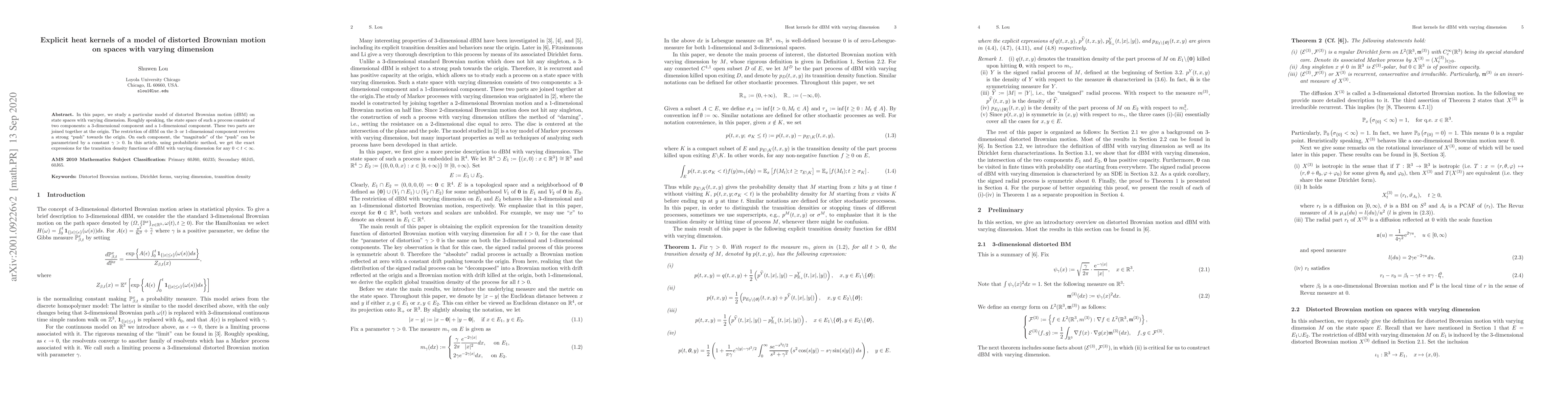 This paper investigates a distorted Brownian motion model on state spaces with varying dimensions, specifically a $3$-dimensional and $1$-dimensional component joined at the origin. The authors derive exact expressions for the transition density functions using probabilistic methods for any time $0<t<\infty$.