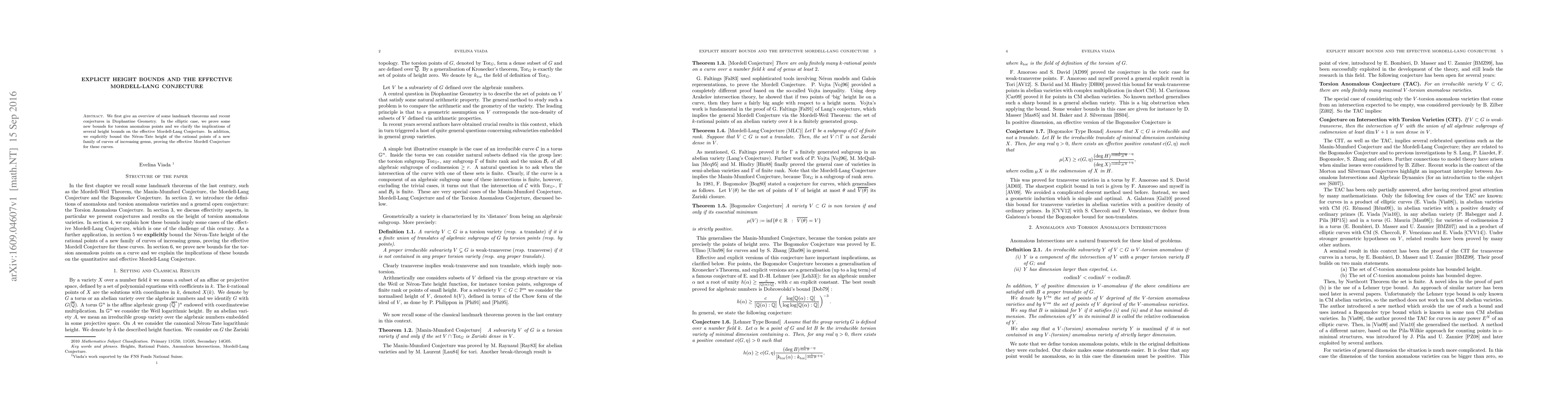 We give an overview of some landmark theorems and recent conjectures in Diophantine Geometry. In the elliptic case, we prove some new bounds for torsion anomalous points and we clarify the implications of several height bounds on the effective Mordell-Lang Conjecture. We also explicitly bound the Neron-Tate height of the rational points of a family of curves of increasing genus.