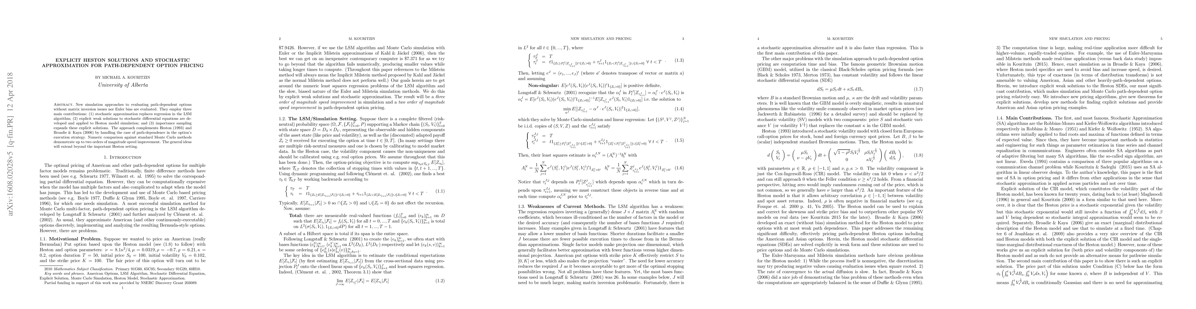 New simulation approaches to evaluating path-dependent options without matrix inversion issues nor Euler bias are evaluated. They employ three main contributions: Stochastic approximation replaces regression in the LSM algorithm; Explicit weak solutions to stochastic differential equations are developed and applied to Heston model simulation; and Importance sampling expands these explicit solutions. The approach complements Heston (1993) and Broadie and Kaya (2006) by handling the case of path-dependence in the option's execution strategy. Numeric comparison against standard Monte Carlo methods demonstrate up to two orders of magnitude speed improvement. The general ideas will extend beyond the important Heston setting.