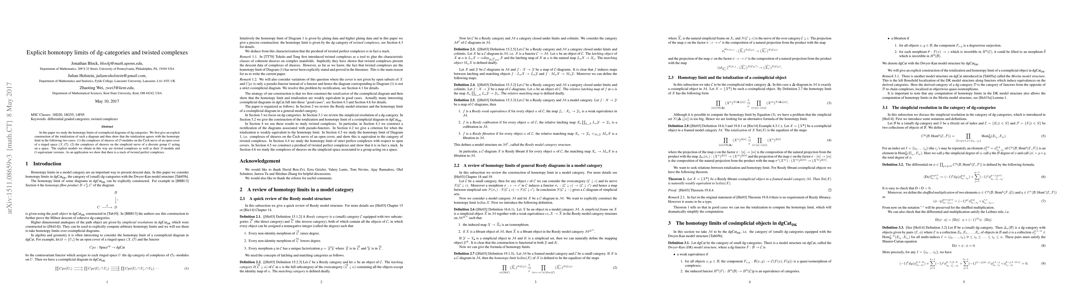 This paper constructs explicit homotopy limits for cosimplicial diagrams of dg-categories, showing agreement with totalization in two specific cases: sheaf complexes on Čech nerves and on simplicial nerves under group actions. It introduces twisted complexes and their module/equivariant versions, leading to the discovery of a stack of twisted perfect complexes.