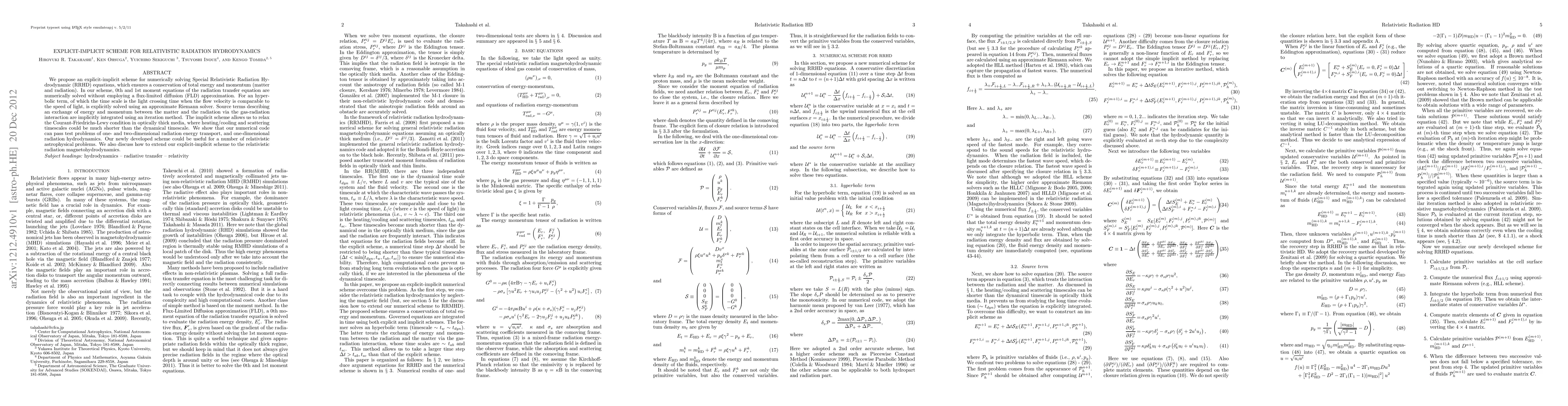 Researchers propose an explicit-implicit scheme for numerically solving relativistic radiation hydrodynamics equations, ensuring conservation of energy and momentum in matter and radiation, with potential applications in astrophysical problems.